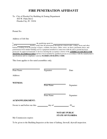 Fire Penetration Affidavit