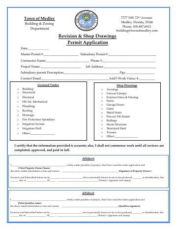 Revisions and Shop Drawings Permit Application