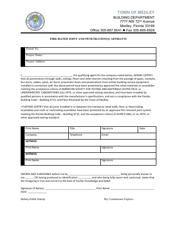 Fire-Rated Joint and Penetration Affidavit