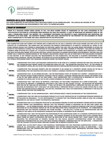 Disclosure document that owner-builders must sign and have notarized to confirm they understand their legal obligations and responsibilities when acting as their own contractor.