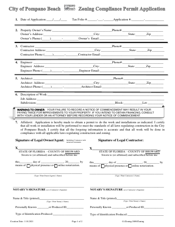 Notarize your Zoning Compliance Application